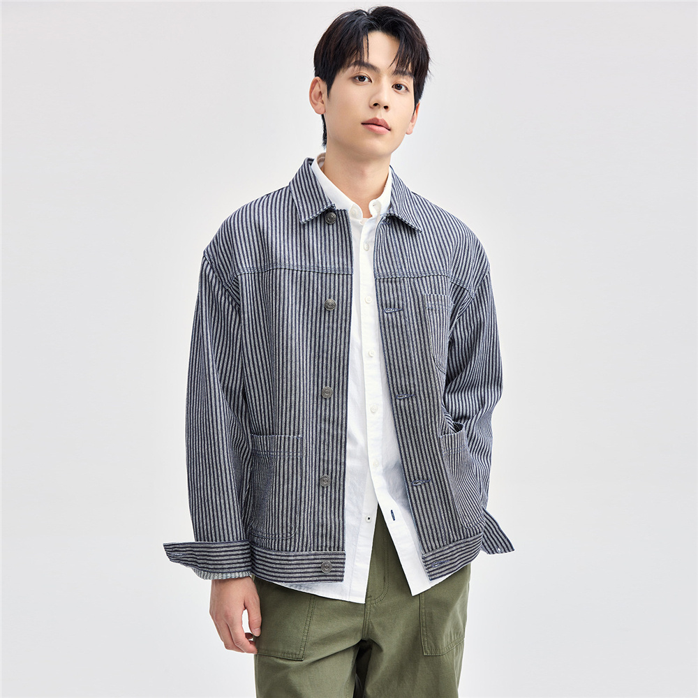 杰克琼斯男原色水洗牛仔衣秋季 灯芯绒翻领夹克外套巴恩风上衣男装