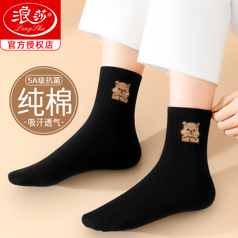 吸汗防臭女士中筒全棉袜 爆款 浪莎白色袜子女生纯棉春秋季 2025新款