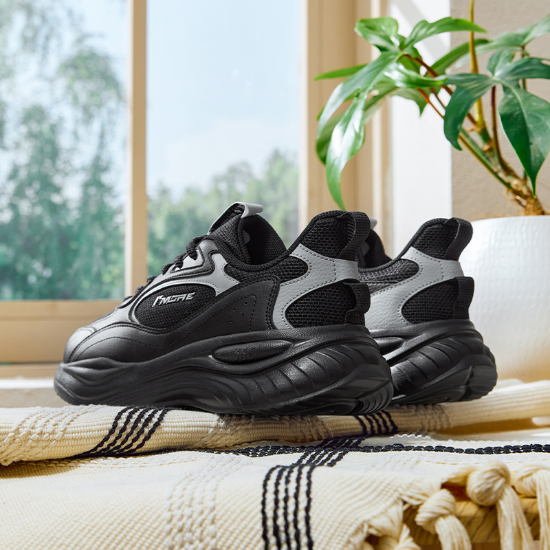 男士 冬季 透气爸爸鞋 黑色皮面防水跑步鞋 子 鸿星尔克运动鞋 鞋 男跑鞋