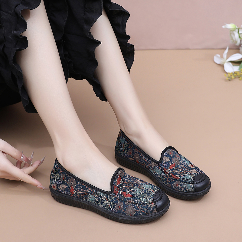 休闲舒适单鞋 2025春季 透气软底绣花中老年妈妈鞋 防滑奶奶鞋 布鞋