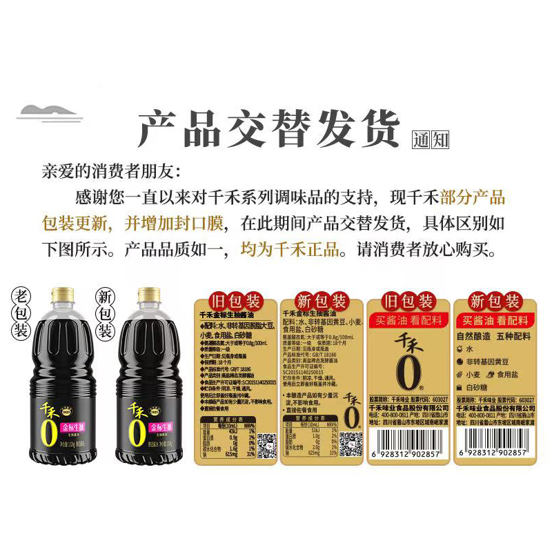 千禾酱油0添加味极鲜生抽炒菜烧肉凉拌蒸鱼点蘸料家用酿造酱油