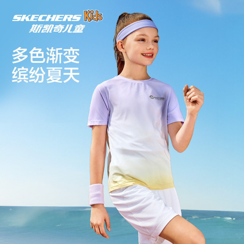 训练服男女童运动短袖 Skechers斯凯奇儿童速干衣凉感T恤衫 夏季