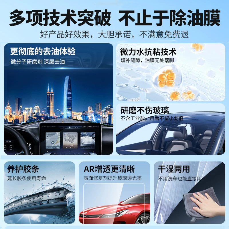 汽车玻璃油膜清洁剂去除剂前挡风玻璃强力去油污泡沫去油膜清洗剂