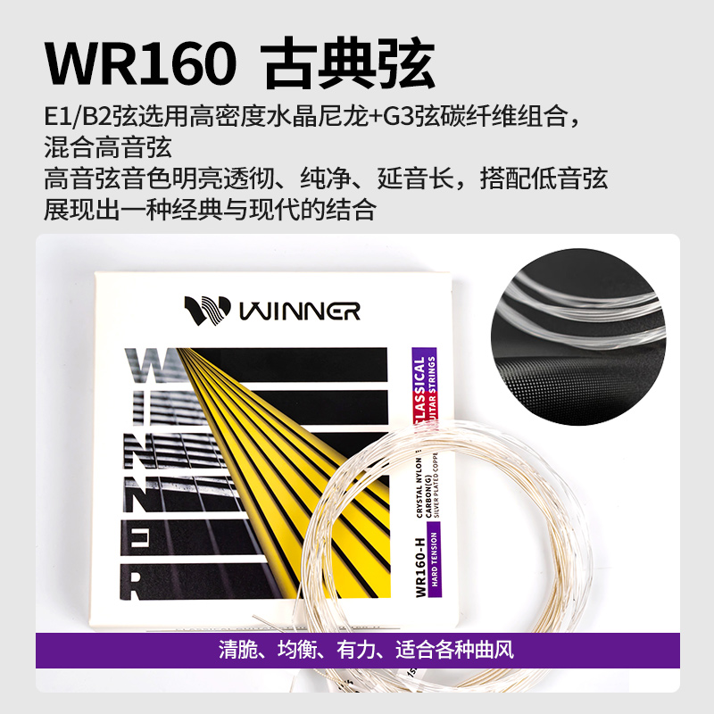 Winner赢家古典吉他弦中高张力水晶尼龙碳纤维古典琴弦一套六根