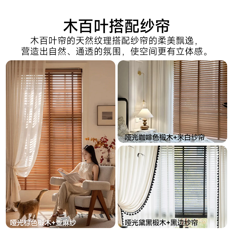 杜亚高端电动木百叶窗帘中古风实木黑色白色阳台书房窗户进口椴木
