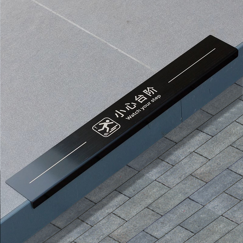 加长小心台阶地贴不锈钢包边警示牌提示牌注意台阶请勿戏水小心地滑提示贴定制超长户外防滑安全警示标志牌