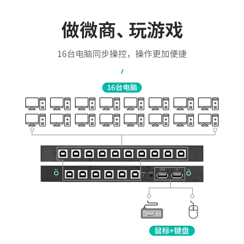 16口键鼠游戏同步器usb多电脑共享逆水寒dnf地下城游戏搬砖kvm物理多开穿屏控制器防封 迈拓维矩MT KM1016