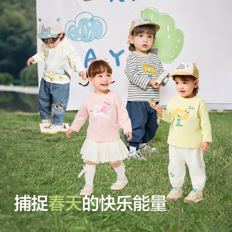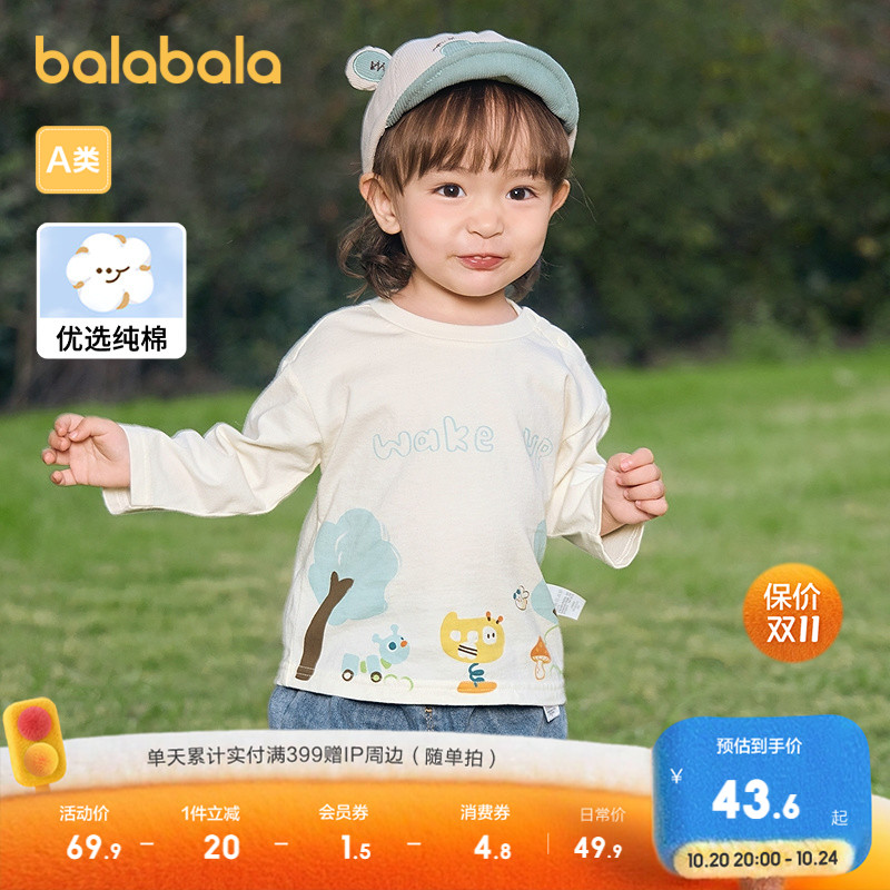 t恤女童男童2025新款 婴儿长袖 儿童上衣萌 宝宝打底衫 巴拉巴拉童装
