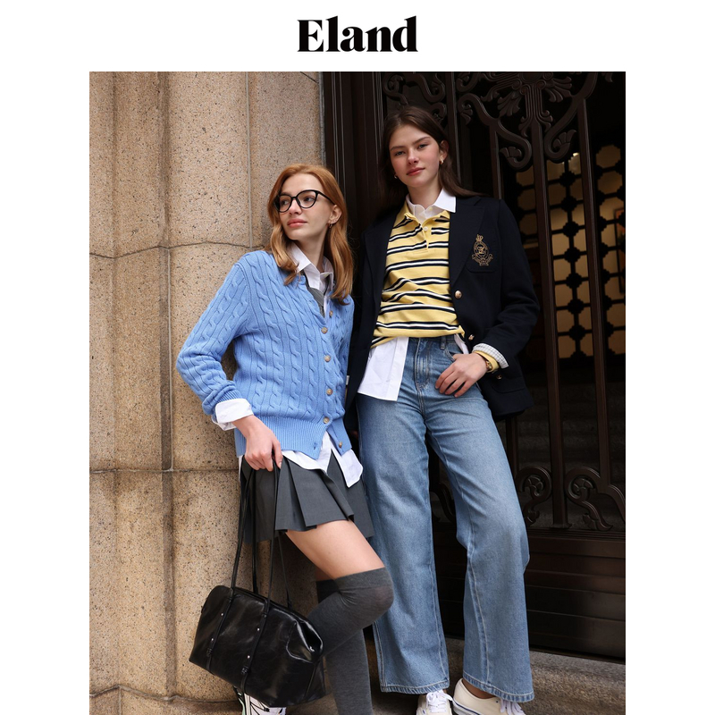 2025春季 女春日棉花糖绞花毛衫 Eland衣恋毛针织衫 新款 匹马棉