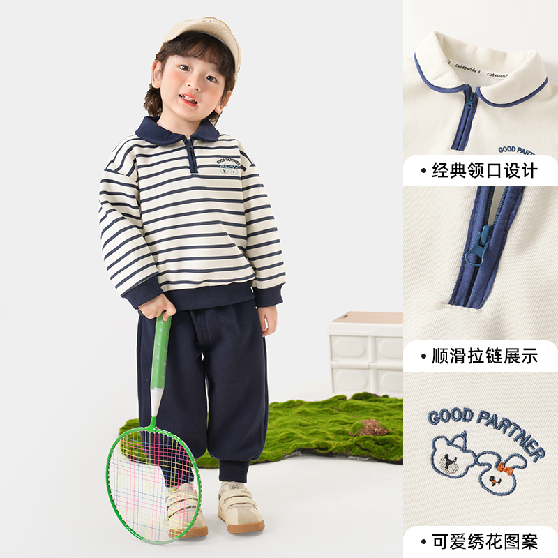 女童宝宝两件套 秋装 咔咔熊猫男童卫衣套装 春秋婴儿衣服卫衣套装