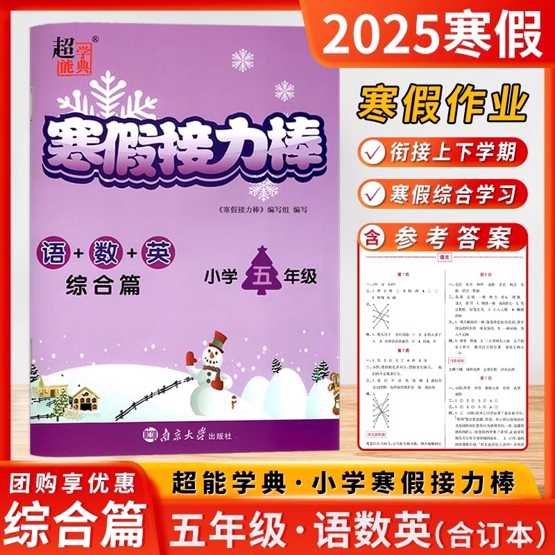 2025寒假适用寒假接力棒综合篇语文数学英语小学一二三四五六年级全一册寒假作业本练习册教辅教材辅导用书南京大学出版 社超能学典