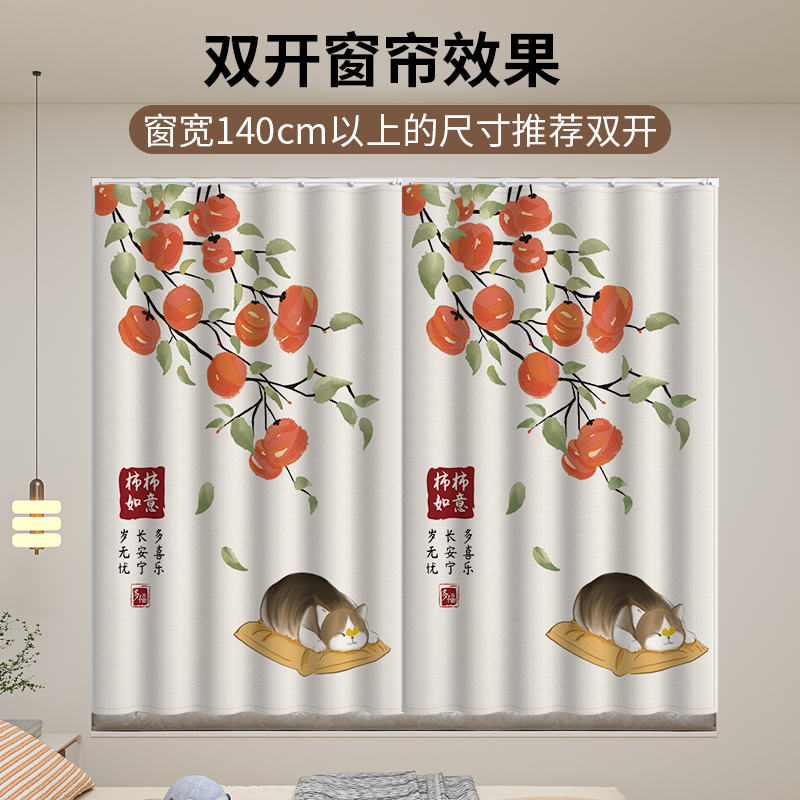 2025新款 免打孔短窗帘遮光挂钩滑轨卧室小窗户防晒隔热遮阳遮挡帘