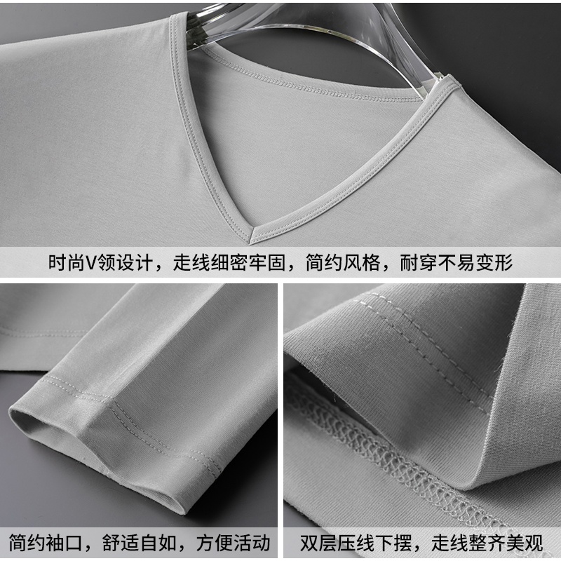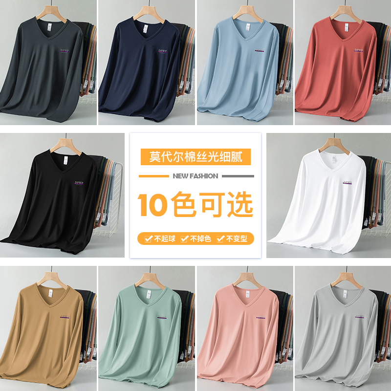 黑色小衫 t恤秋冬V领内搭打底衫 潮流字母印花上衣服 长袖 莫代尔男士