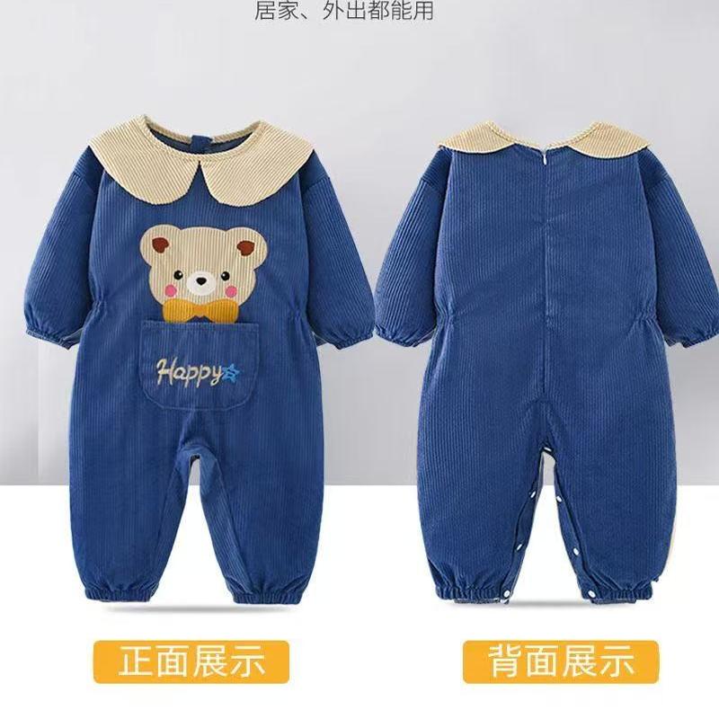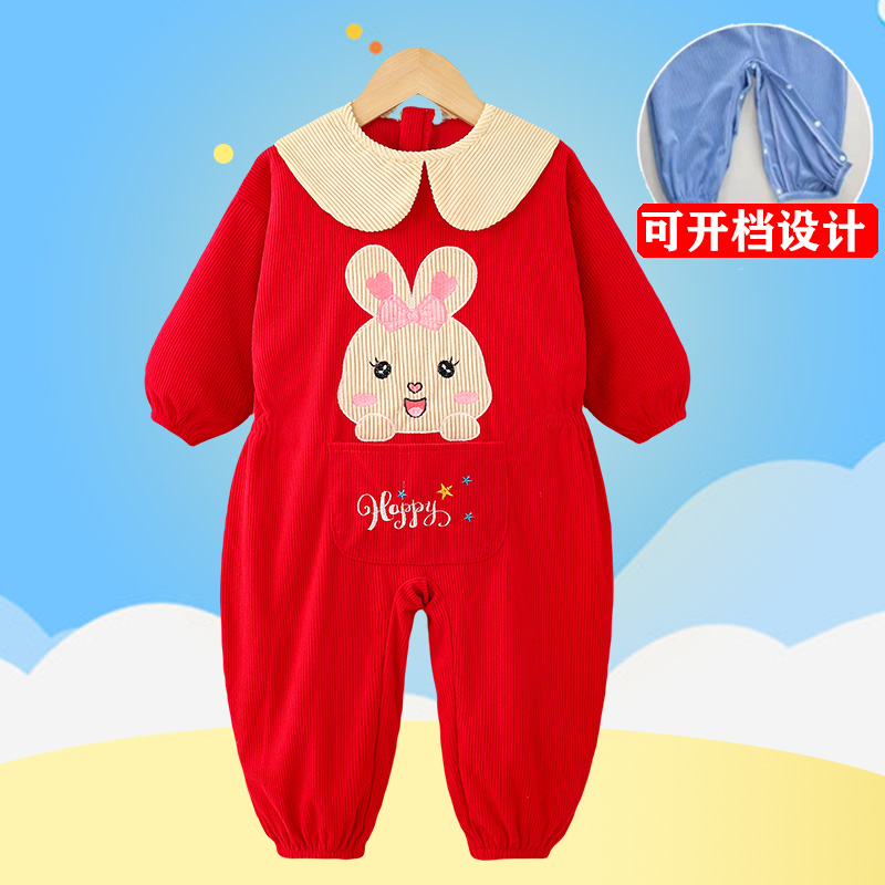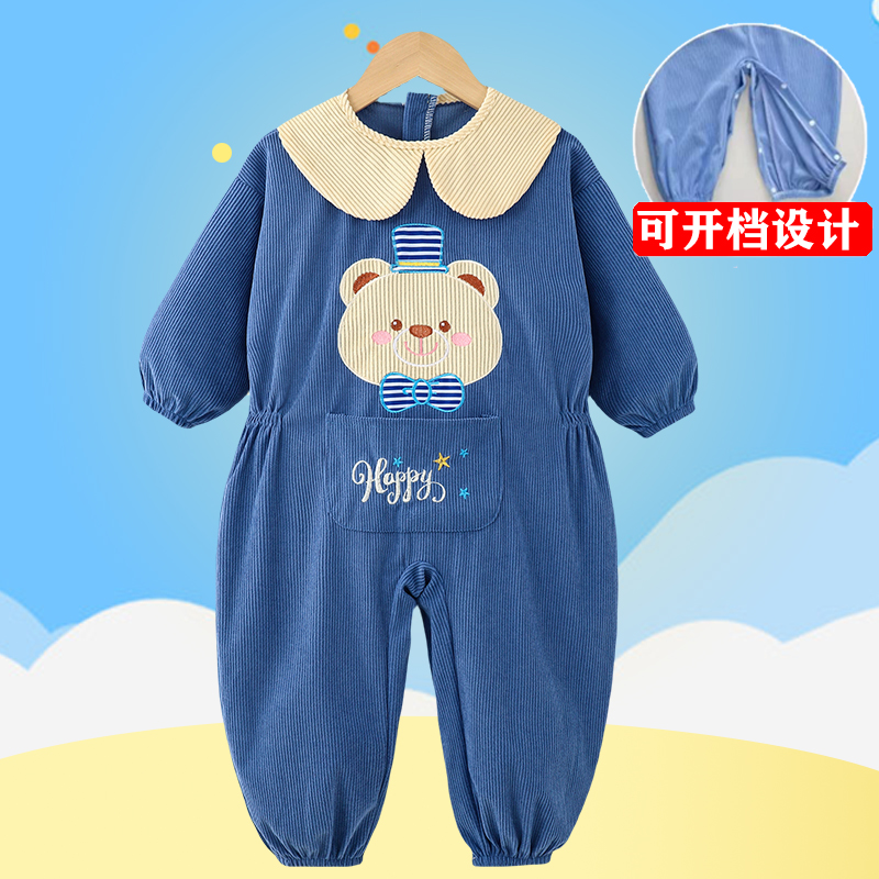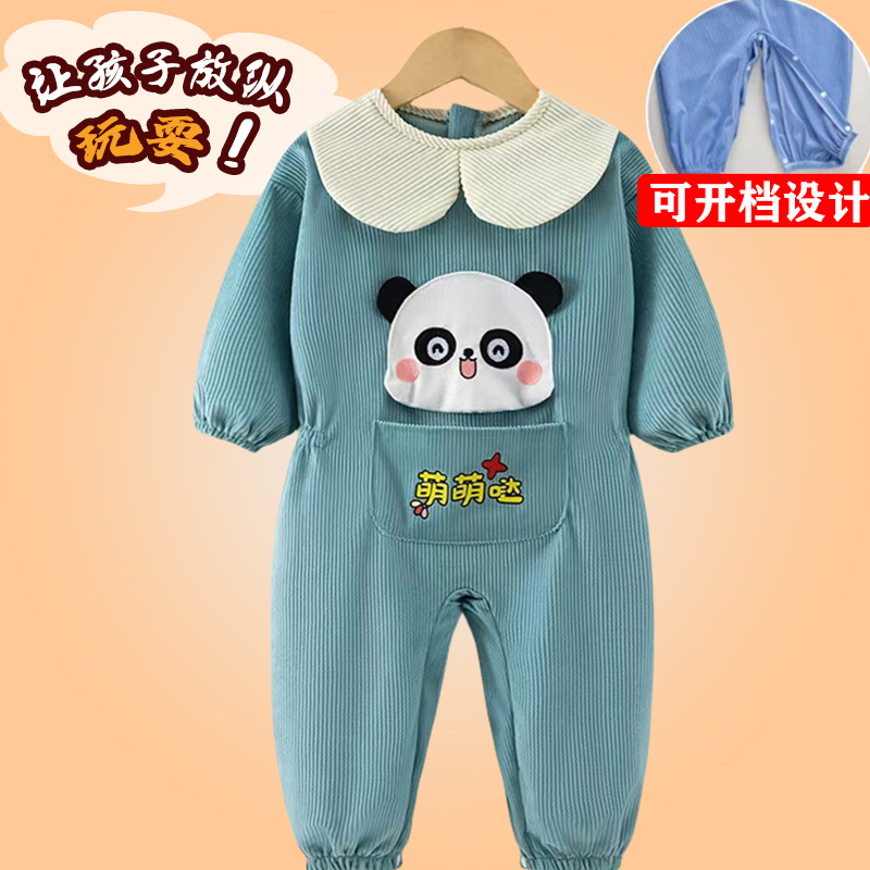 宝宝围裙吃饭围兜罩衣防脏国风爬行服儿童长袖 外穿连体衣 一体式