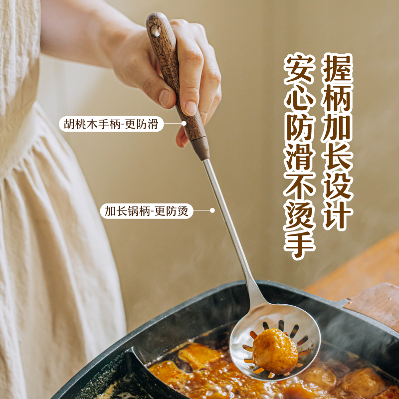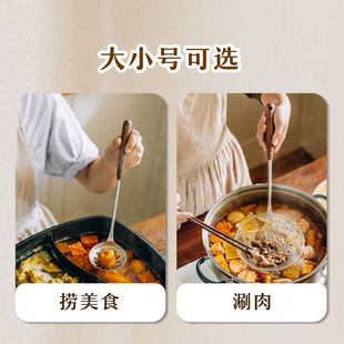 树可胡桃木迷你小漏勺不锈钢食品级过滤捞勺滤勺火锅漏网厨房家用