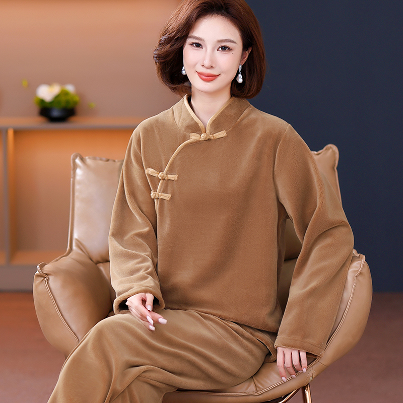套装 女加厚保暖秋冬法兰绒家居服加肥加大码 珊瑚绒睡衣妈妈款 冬季