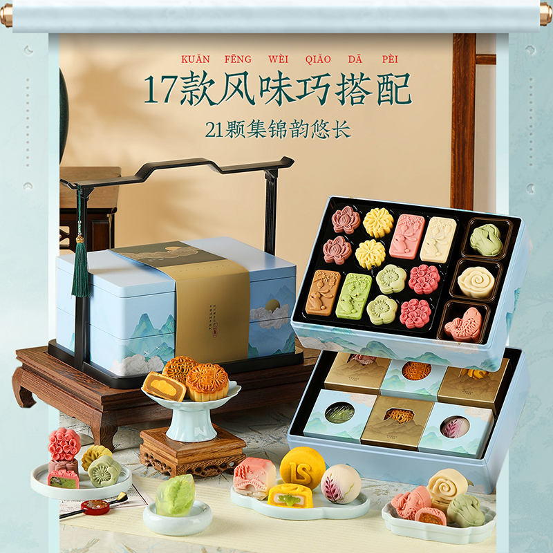 悠享时水墨国风月饼礼盒中秋节桃山皮绿豆糕点心送礼员工福利团购