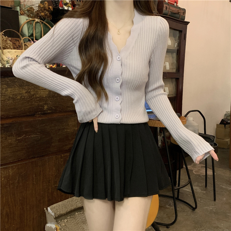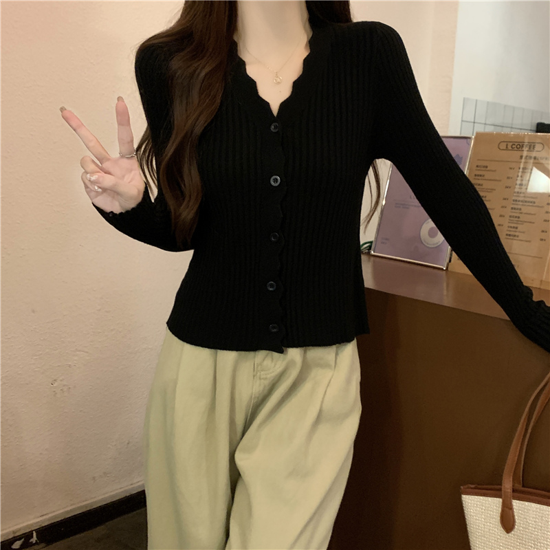v领开衫 打底针织衫 毛衣女士修身 小个子内搭长袖 上衣 短款 春秋新款