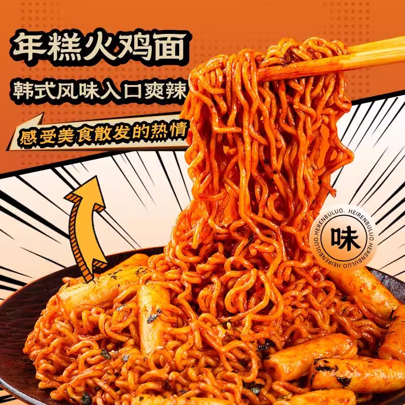 嘿人部落年糕火鸡面芝士韩式 冲泡速食干拌面方便泡面拉面 甜辣盒装