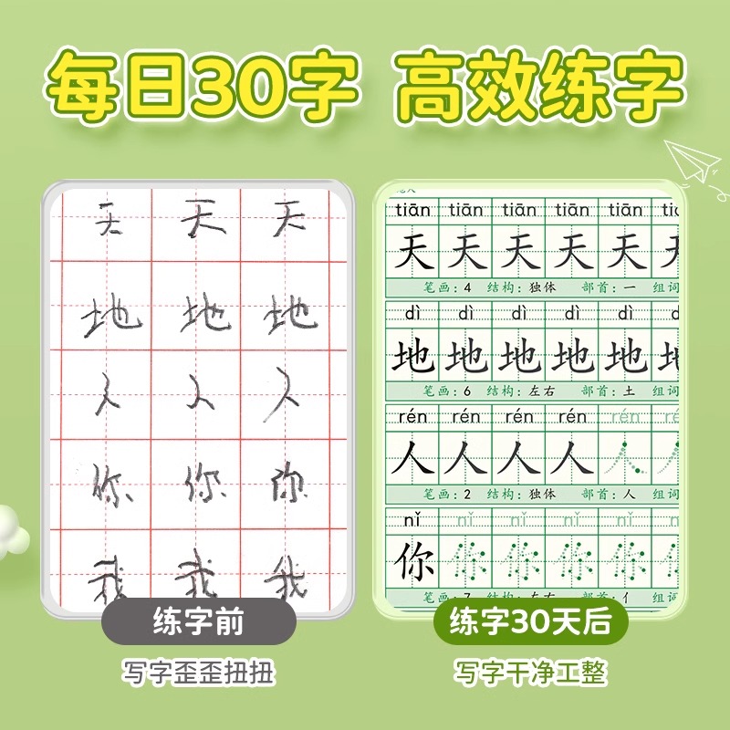 书行小学生每日30字练字帖一二三年级字帖上下册语文同步点阵四五六年级人教版 小学专用一练钢笔硬笔书写默写本儿童训练组词