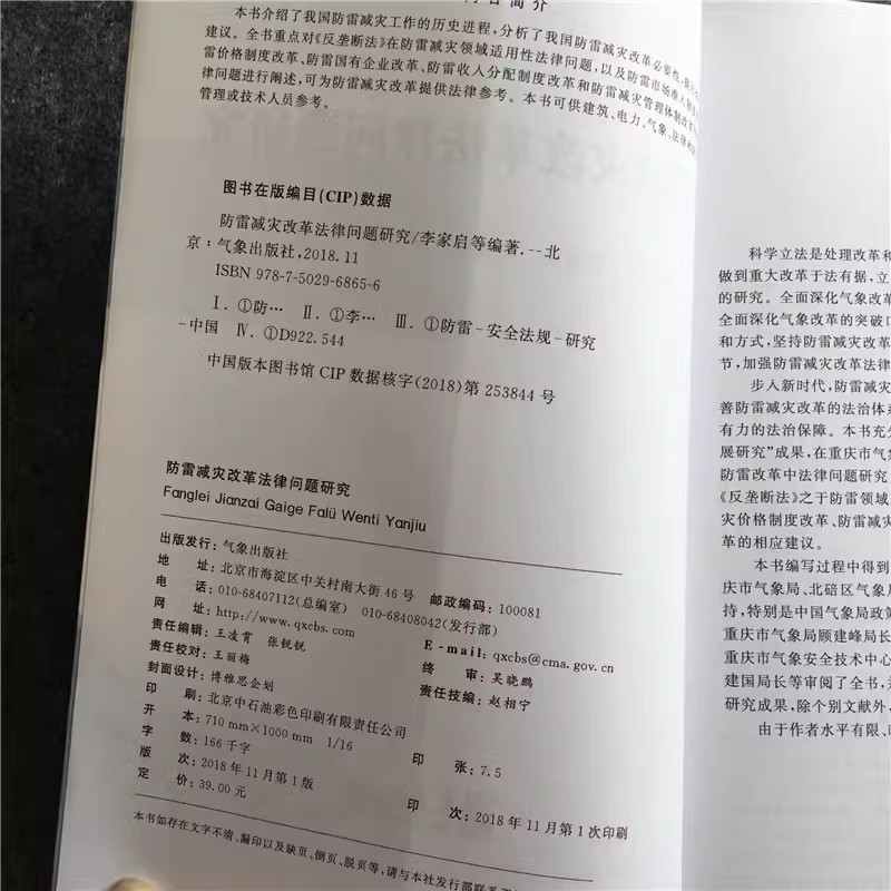 编著 社9787502968656 王月宾 气象出版 专业科技 自然科学 等 李祯 李良福 李家启 防雷减灾改革法律问题研究