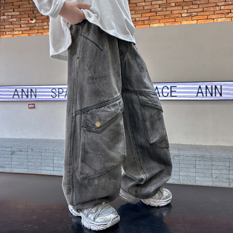 子 加绒小个子显瘦宽松直筒裤 黑灰色高腰阔腿牛仔裤 女2025秋冬新款