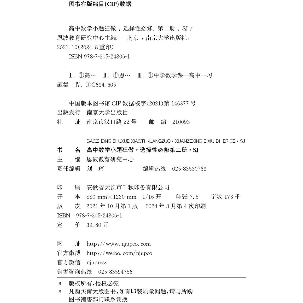 恩波新教材小题狂做 选修2高二上同步训练 高中数学选择性必修第二册苏教版 基础过关 章末提优阶段专题训练附赠小帮手 2024年秋