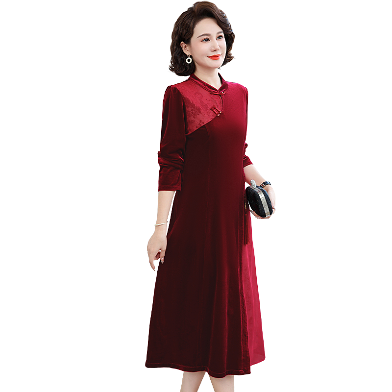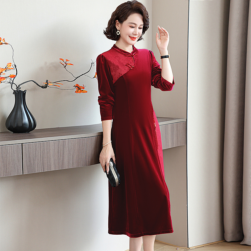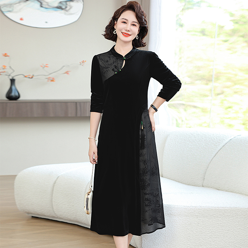 中式 中老年女装 旗袍减龄 洋气金丝绒连衣裙2025新款 中年妈妈春秋装