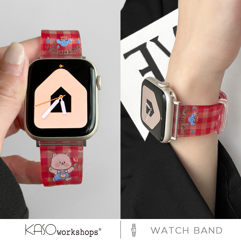 KASO新款 创意卡通可爱透明双层印花iWatch表带适用于苹果手表applewatch87小众41mm可爱女透气夏运动小众