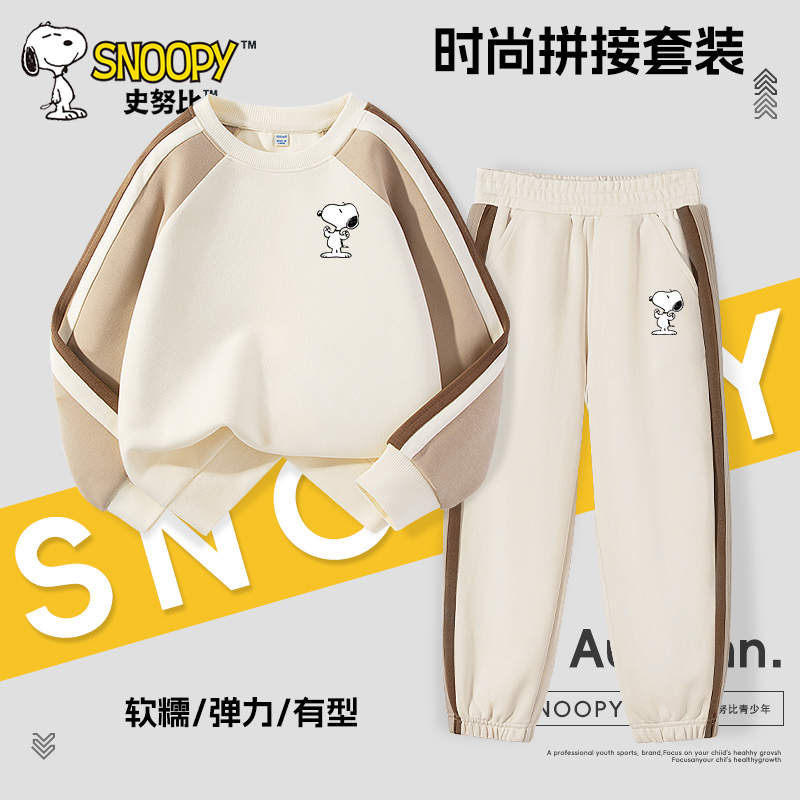 男孩休闲秋装 男大童卫衣2025新款 男童运动服 春秋款 史努比儿童套装