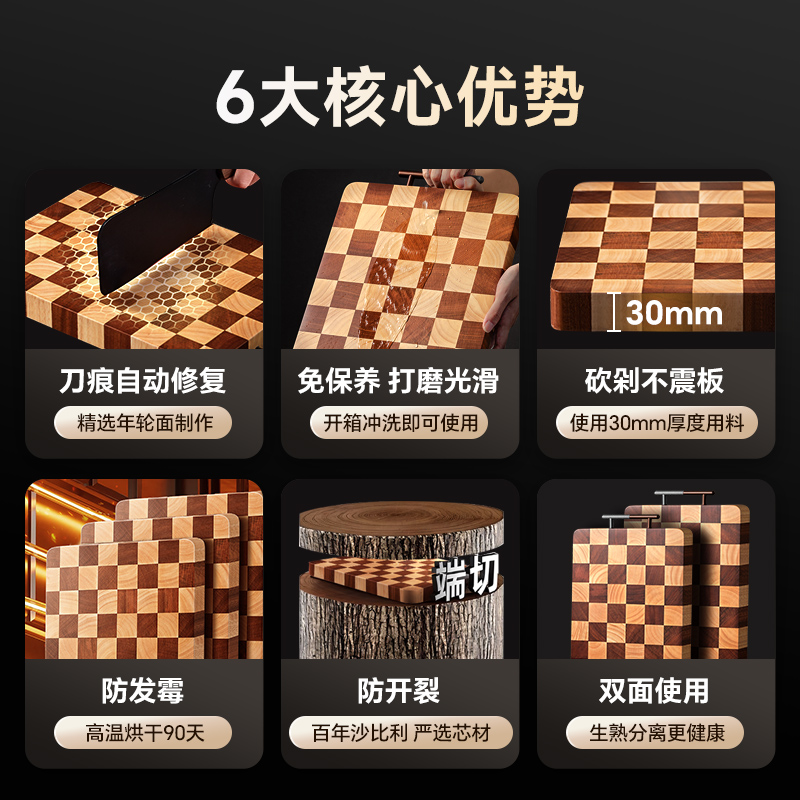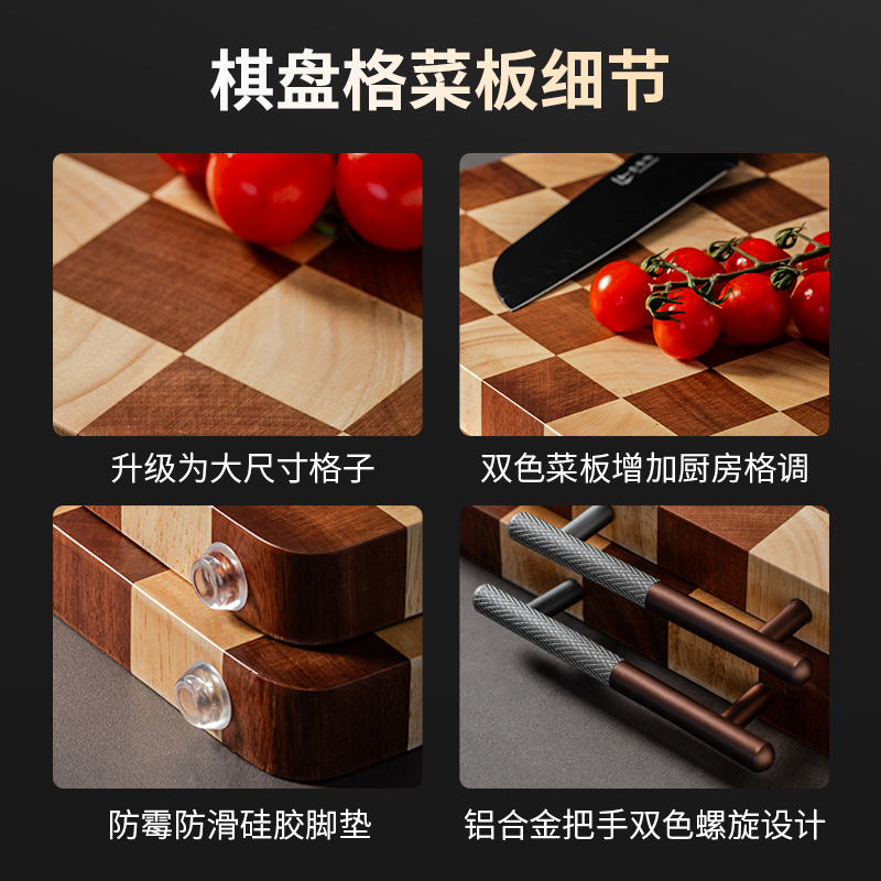 森物社棋盘格菜板抗菌防霉木质砧板案板切菜板实木乌檀木刀板家用