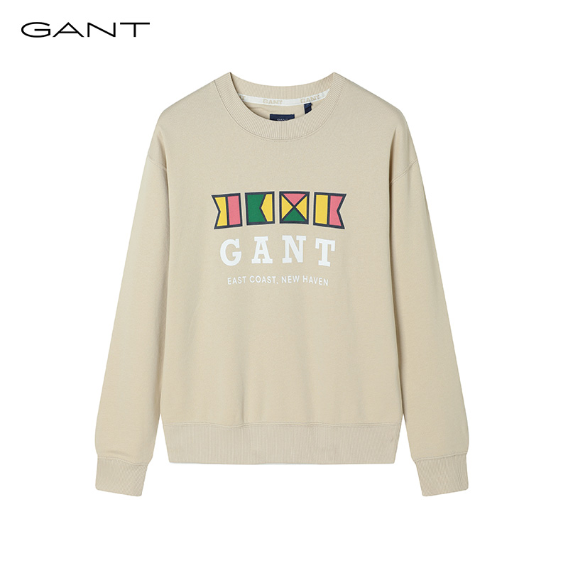 女士宽松休闲字母印花圆领套头长袖 甘特秋季 GANT 卫衣 100%棉
