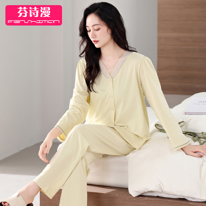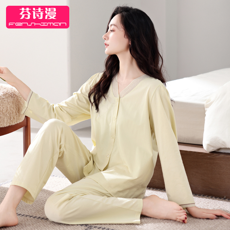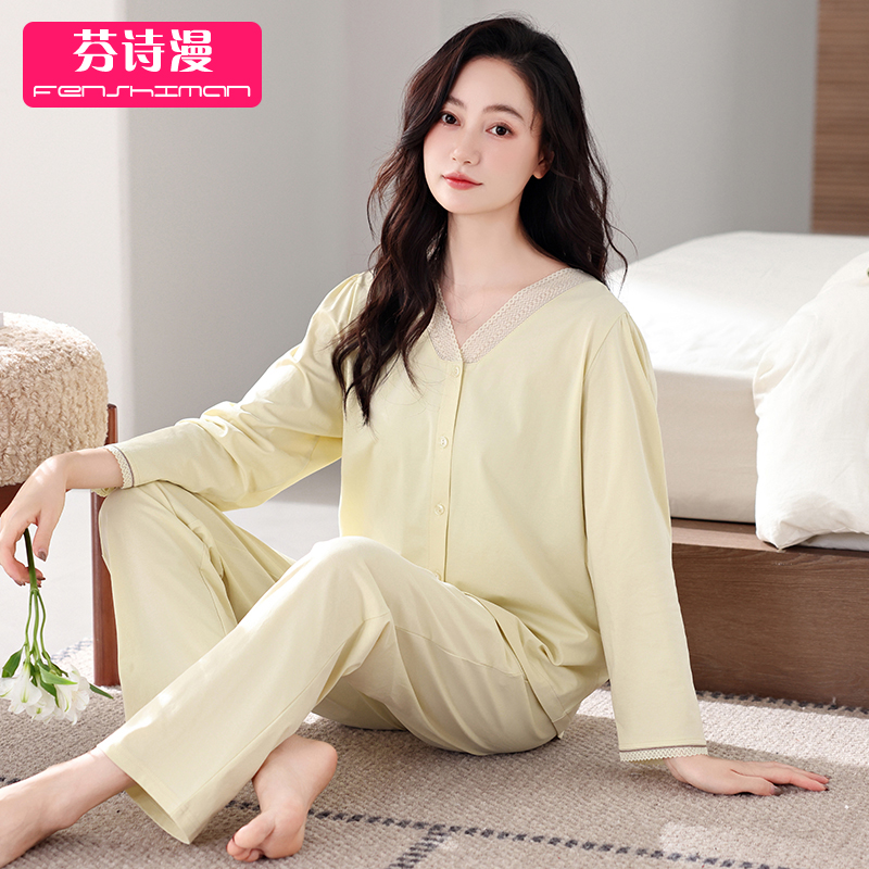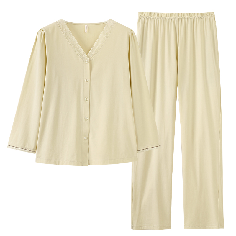 秋季 女款 中年妈妈开衫 V领夏季 家居服 睡衣女士春秋款 薄款 纯棉长袖