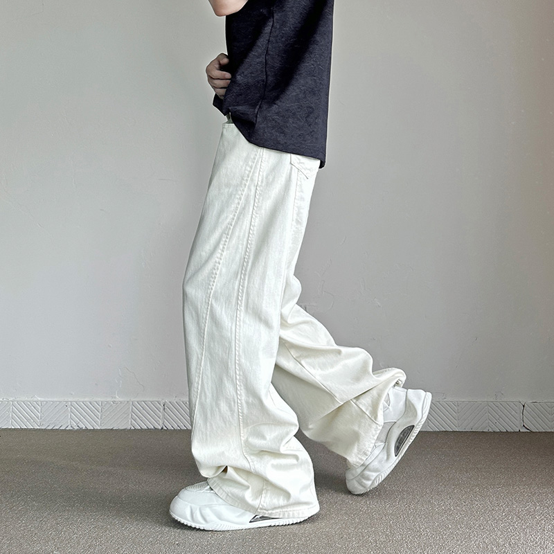 慵懒宽松显瘦垂感牛仔长裤 新款 女2025年秋季 米白高腰不贴腿喇叭裤