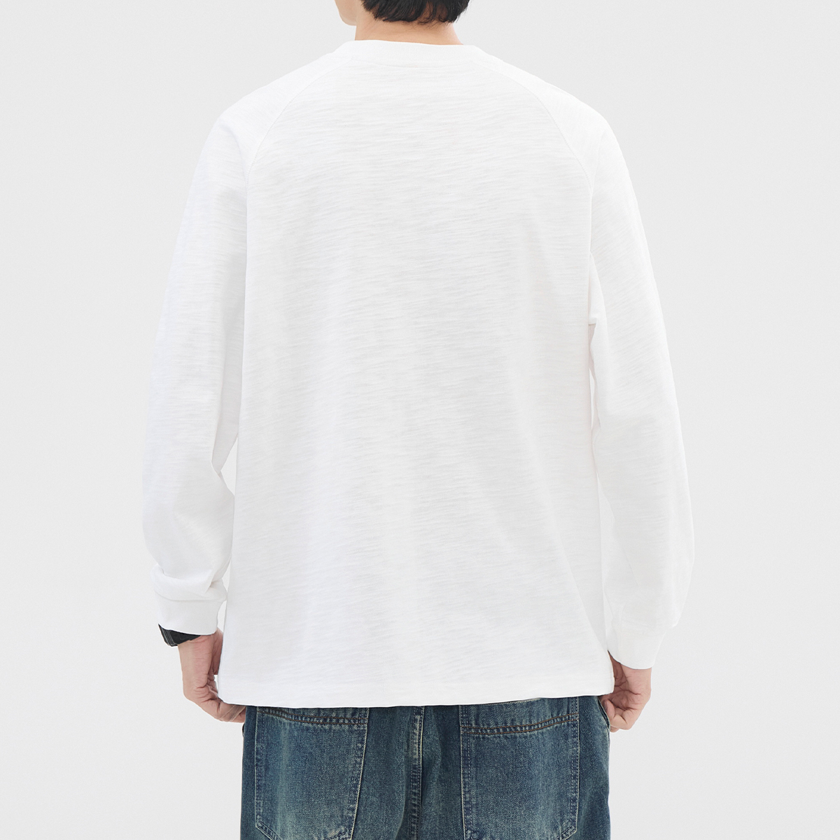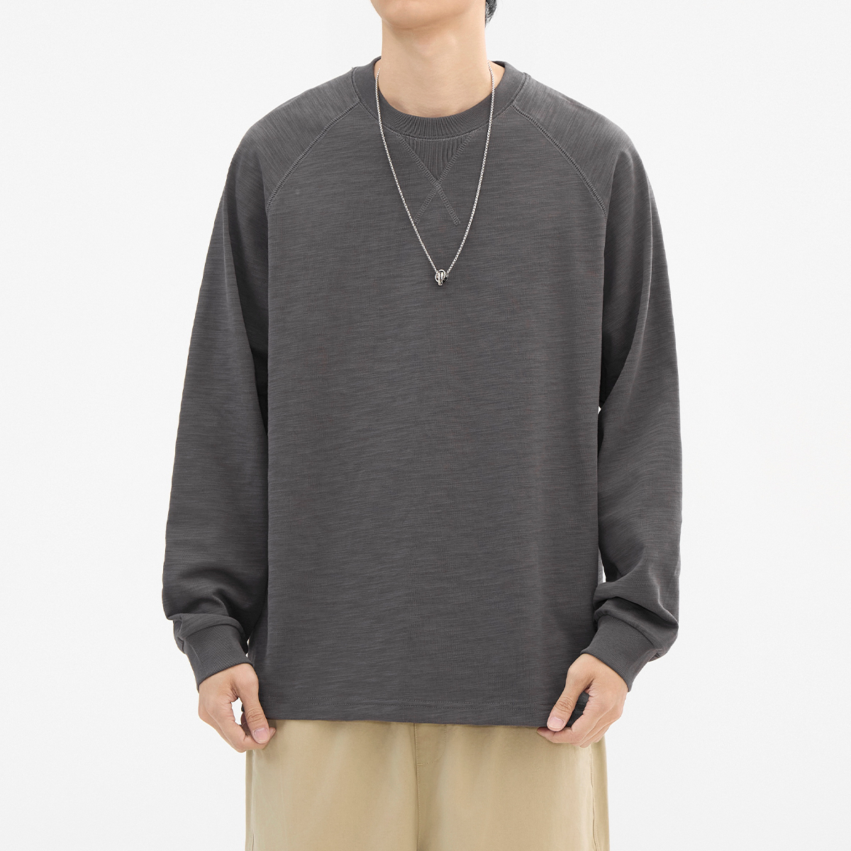 300g重磅竹节棉长袖 卫衣纯棉打底衫 t恤男士 插肩袖 宽松秋季 hansca