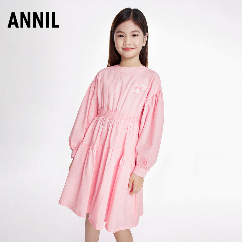安奈儿女童连衣裙洋气长袖 女孩时髦纯棉甜美公主A字裙 2023春新款