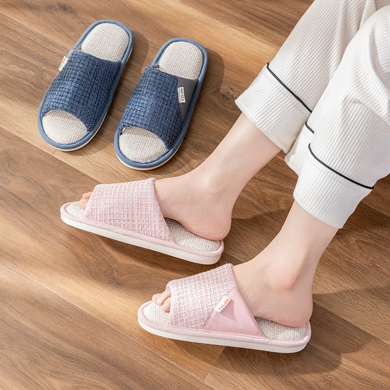 男四季 防滑日系小香风透气室内静音居家软底拖鞋 春秋女款 亚麻拖鞋