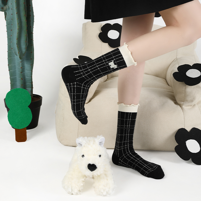 乐福鞋 黑色袜子女中筒纯棉秋冬季 堆堆长袜搭配小皮鞋 爆款 2025新款