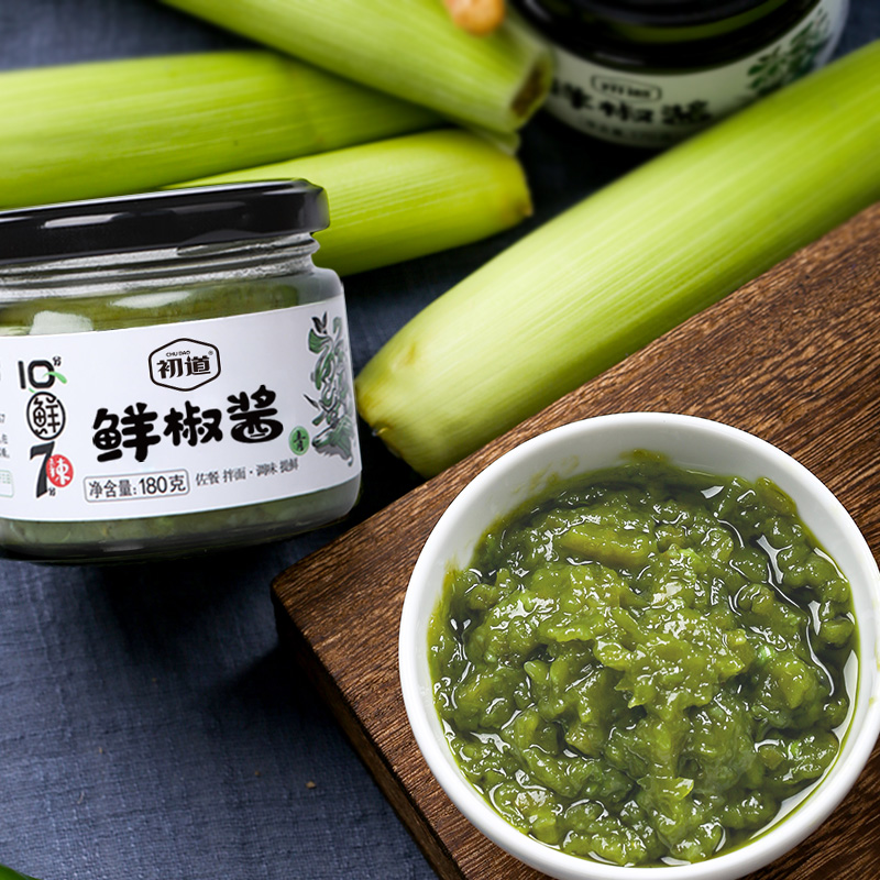 初道鲜椒酱180g家用鲜青椒酱辣椒酱拌饭拌面下饭酱微辣辣椒酱商用