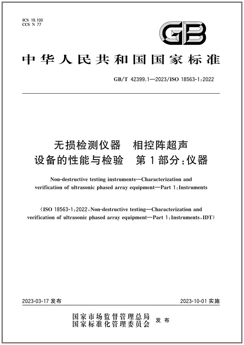 2023无损检测仪器 42399.1 相控阵超声设备 性能与检验 是图书 第1部分:仪器
