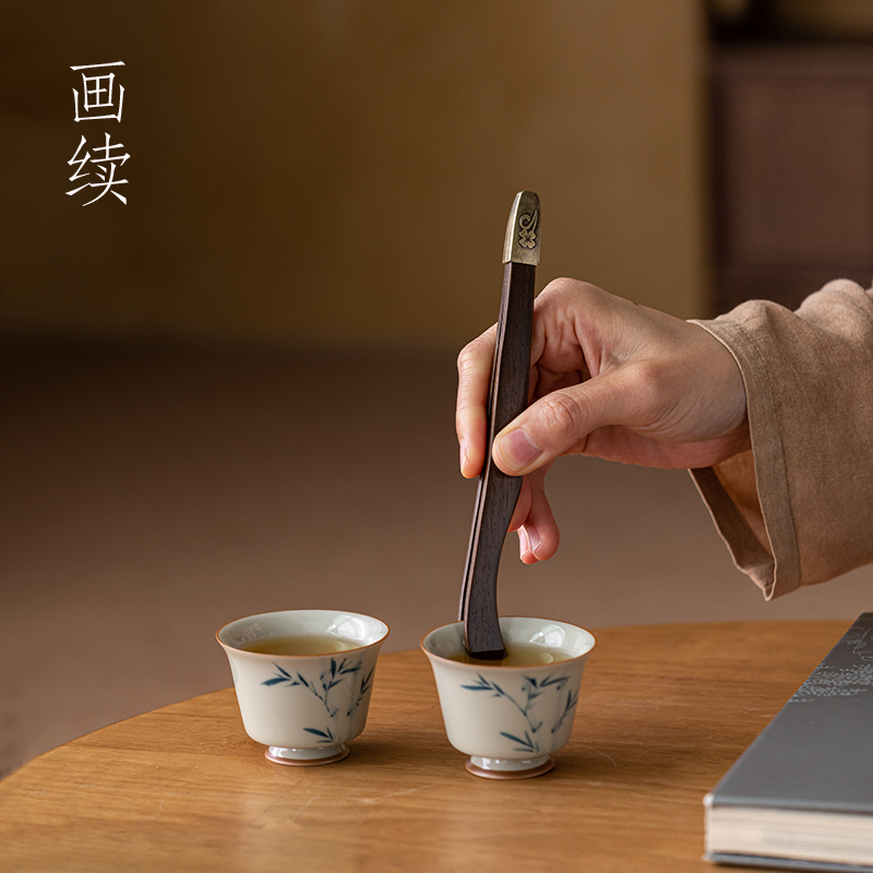 画续黑檀木茶杯茶夹子镊子中式 复古茶道配件杯夹功夫茶具茶道茶勺