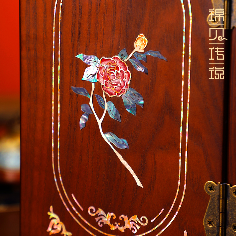 锦贝传说螺钿漆器首饰盒手镯项链盒大容量木质多层手饰品收纳盒
