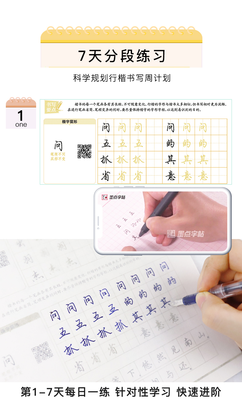 成人速成练字帖女生字体漂亮公务员硬笔楷书行楷行书宋体钢笔字帖正版 荆霄鹏钢笔硬笔书法字帖 书籍 7天学会行楷 墨点字帖