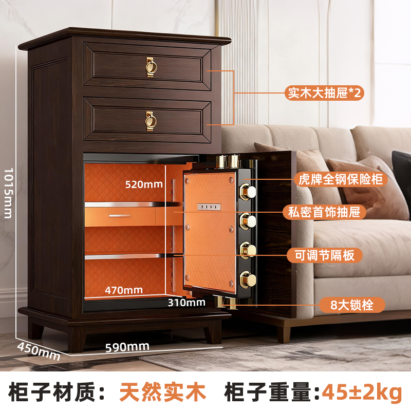 保险箱家用客厅卧室床头储物一体保管柜 实木五斗柜隐形指纹密码 100cm虎牌2025新款 防盗保险柜家庭办公室美式