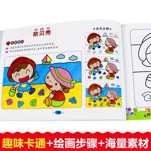 7岁水彩笔涂色书幼儿园涂鸦填色画画本一年级少儿美术启蒙涂色绘本画画书马克笔图画本 全套6册儿童彩笔画3