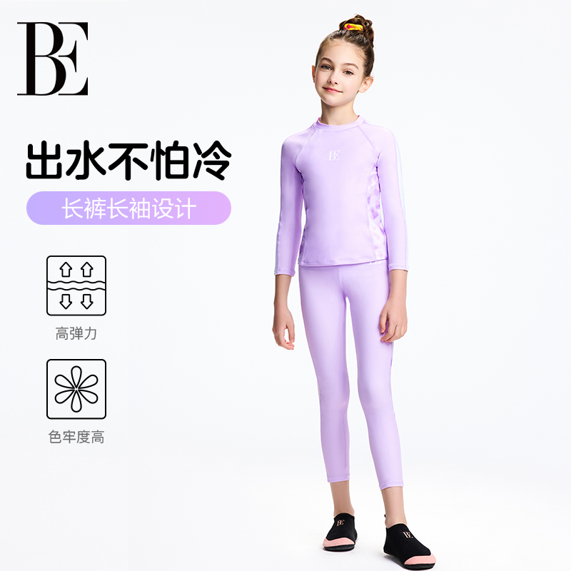 分体防晒抗氯中大童游泳衣新款 BE范德安联名儿童泳衣女孩长袖 长裤