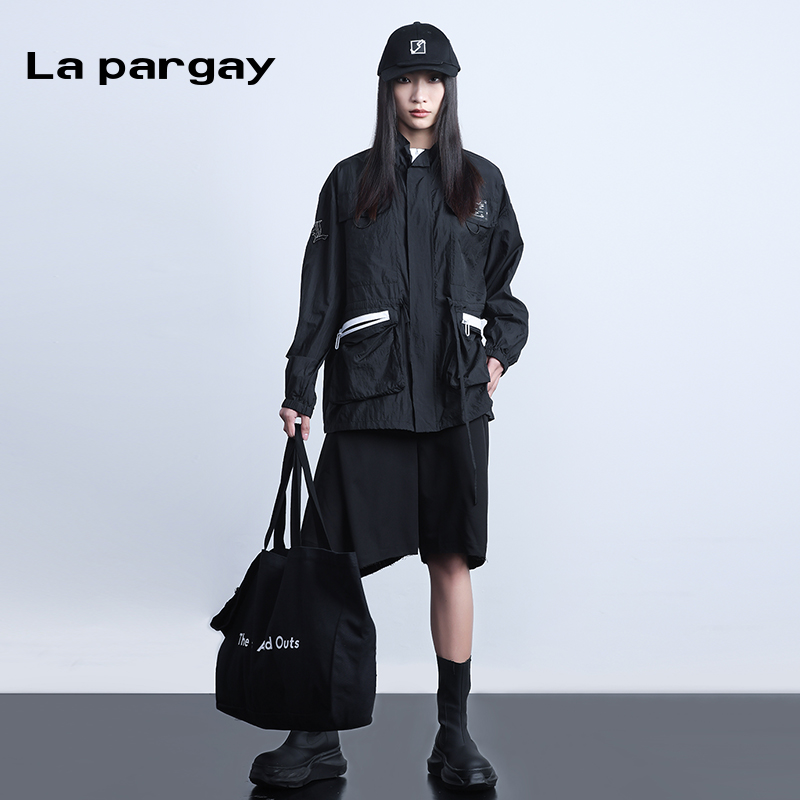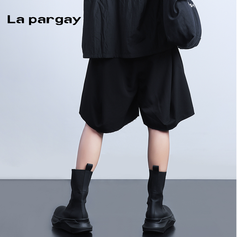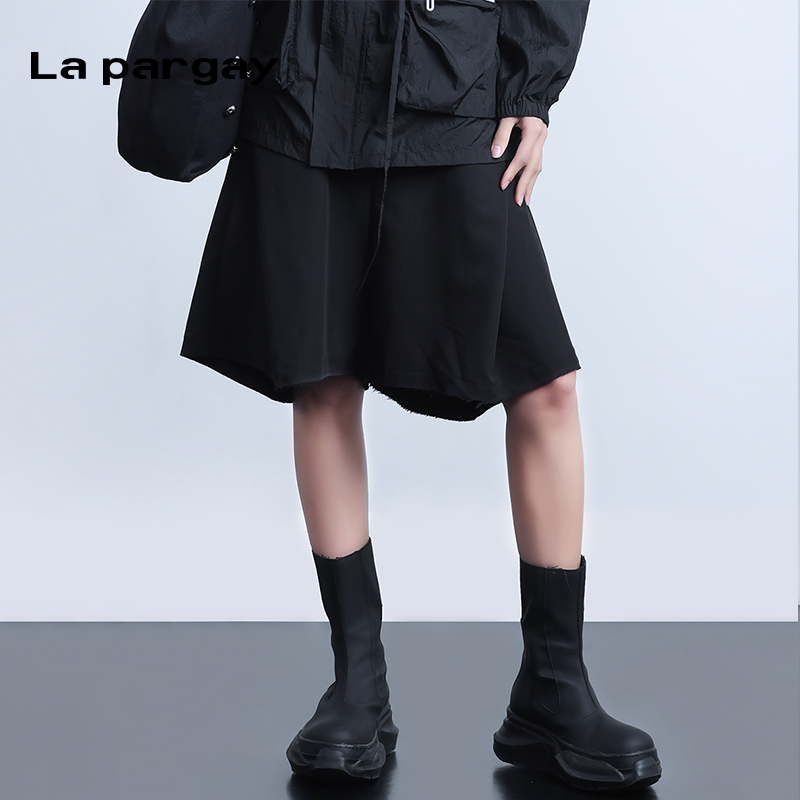 2025春季 休闲宽松裤 新款 黑色个性 子 女式 纳帕佳高腰简洁阔腿五分裤