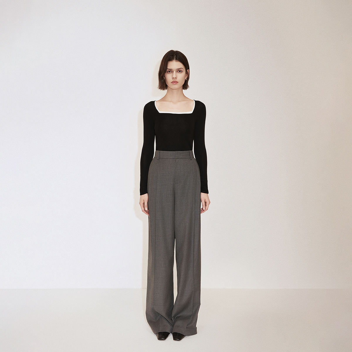 OCHIRLY欧时力秋新套头毛衣女高级方领针织打底衫 桑蚕丝羊毛