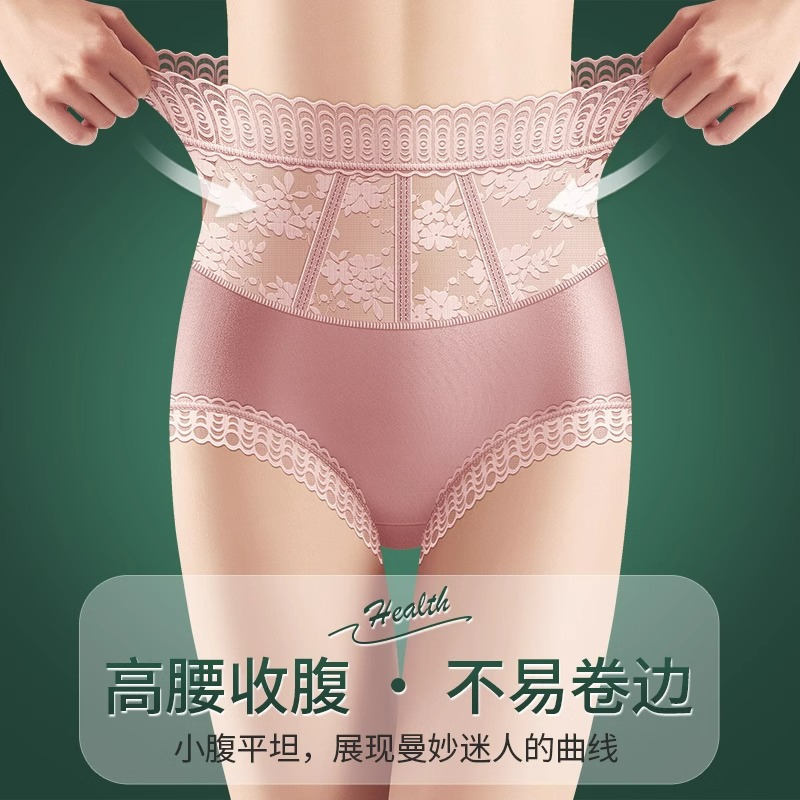 裆透明提臀收腹冰丝无痕三角裤 抗菌中高腰蕾丝内裤 女纯棉夏季