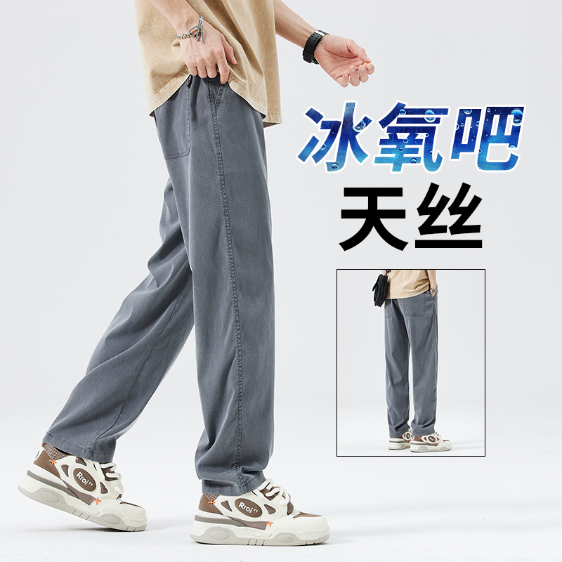 子男超薄宽松直筒垂坠感冰丝阔腿裤 莱赛尔天丝牛仔裤 男生 新款 夏季